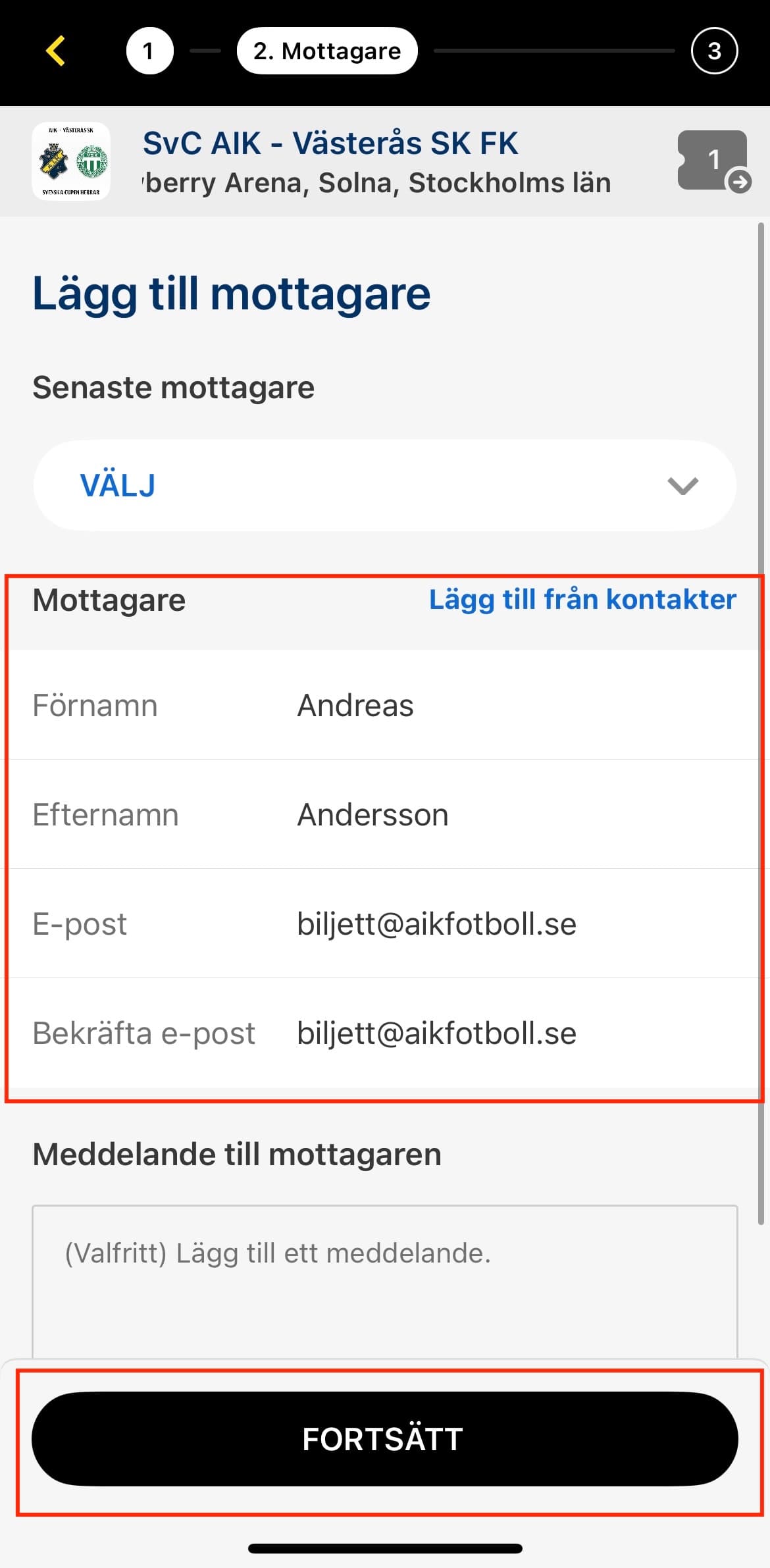 När alla uppgifter är på plats klickar du på "Fortsätt".
