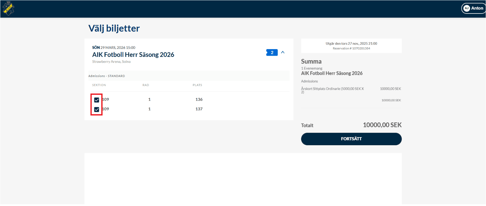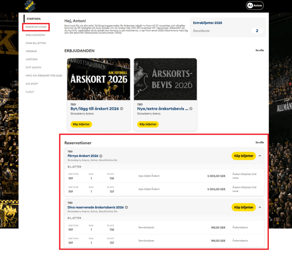 Förlängningen av ditt/dina årskort sker via en reservation som är gjord på ditt konto.