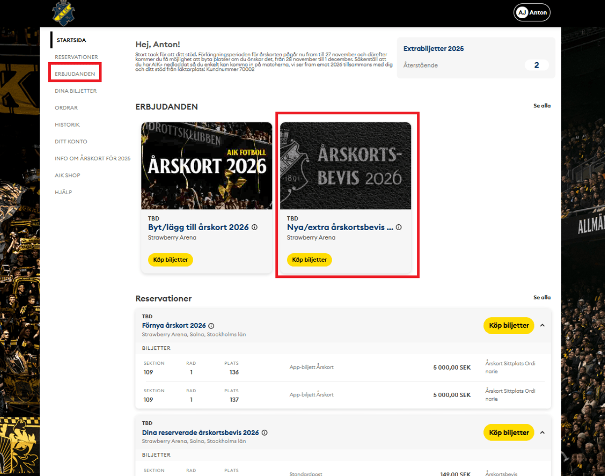 Steg för steg-guide för hur du köper årskortsbevis om du har nya platser till 2026.